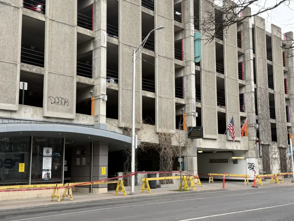 ITHACA, N.Y. — April 10, 2026 — The City of Ithaca closed the Seneca Street Parking Garage on Friday afternoon after falling concrete debris from the third floor to the sidewalk below raised safety concerns. An inspection by the Ithaca Engineering Department and the Ithaca Fire Marshal’s Office found the building’s facade to be “severely deteriorated and at high risk of failure,” according to a city release.